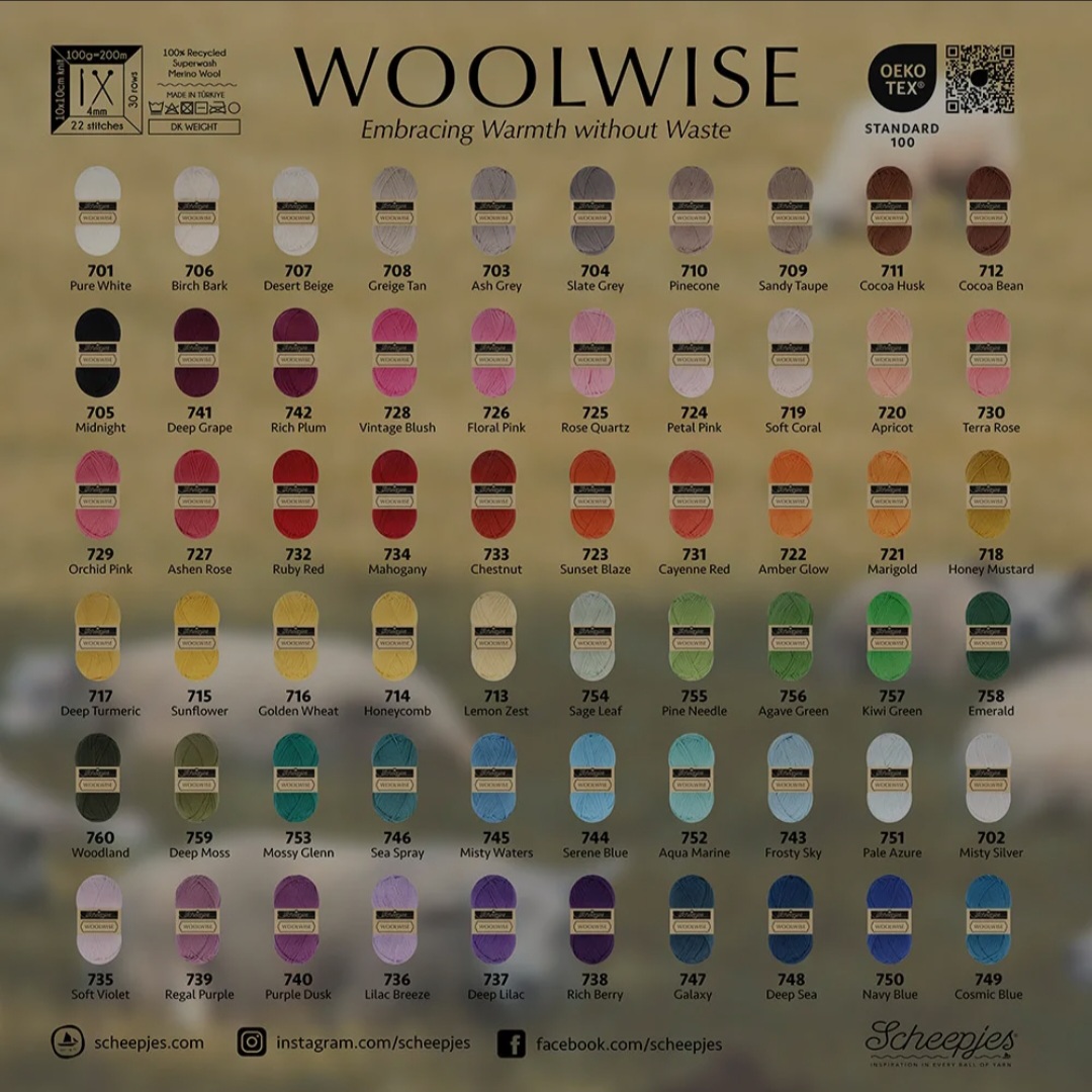 Scheepjes is toegewijd aan kwaliteit en duurzaamheid en dit komt tot uitdrukking in een nieuw, gerecycled garen van merinowol: Scheepjes Woolwise. Het gebruik van gerecycled materiaal betekent een duurzamer en milieuvriendelijker product, zonder in te leveren op kwaliteit. De heerlijk zachte vezels zorgen voor een hoogwaardig garen met een prachtige stekendefinitie. Woolwise is daarmee erg geschikt voor breipatronen met meerdere kleuren en te gebruiken voor allerlei projecten, zoals kleding en woontextiel. Het garen geeft warmte in de winter en koelte in de zomer door de unieke natuurlijke warmte- en vochtregulerende eigenschappen. Het is zacht voor de huid, vriendelijk voor de planeet en bovendien erg onderhoudsvriendelijk.